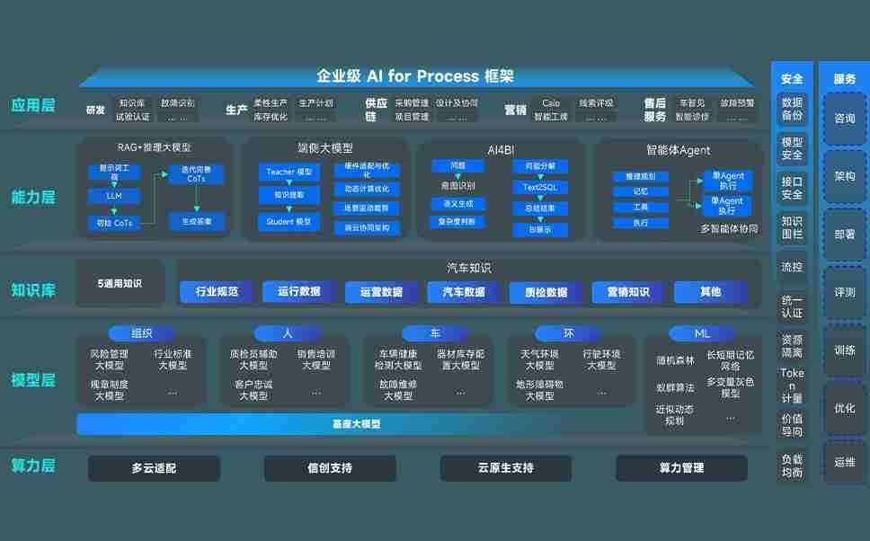 365英国上市公司问学智车解决方案是一套基于AI技术的汽车行业智能化系统,,,覆盖从底层算力到顶层AI应用的全栈方案。。方案由算力层、、、、模型层和应用层组成:算力层,,方案支持多种一体机配置,,具备云端灵活部署、、多云适配以及动态优化计算资源的能力;模型层,,365英国上市公司问学平台版提供了企业级AI应用一站式构建与管理平台,,,支持基于后训练强化技术的汽车企业专属模型的训练、、、、评测和运营;应用层,,,,365英国上市公司问学DeepSeek版提供包括超级员工、、、智能招采、、、、智能营销、、智能客服、、、AI for BI等一系列解决方案,,可助力汽车行业实现数字化转型,,,,让管理更智能、、、、响应更敏捷。。。。